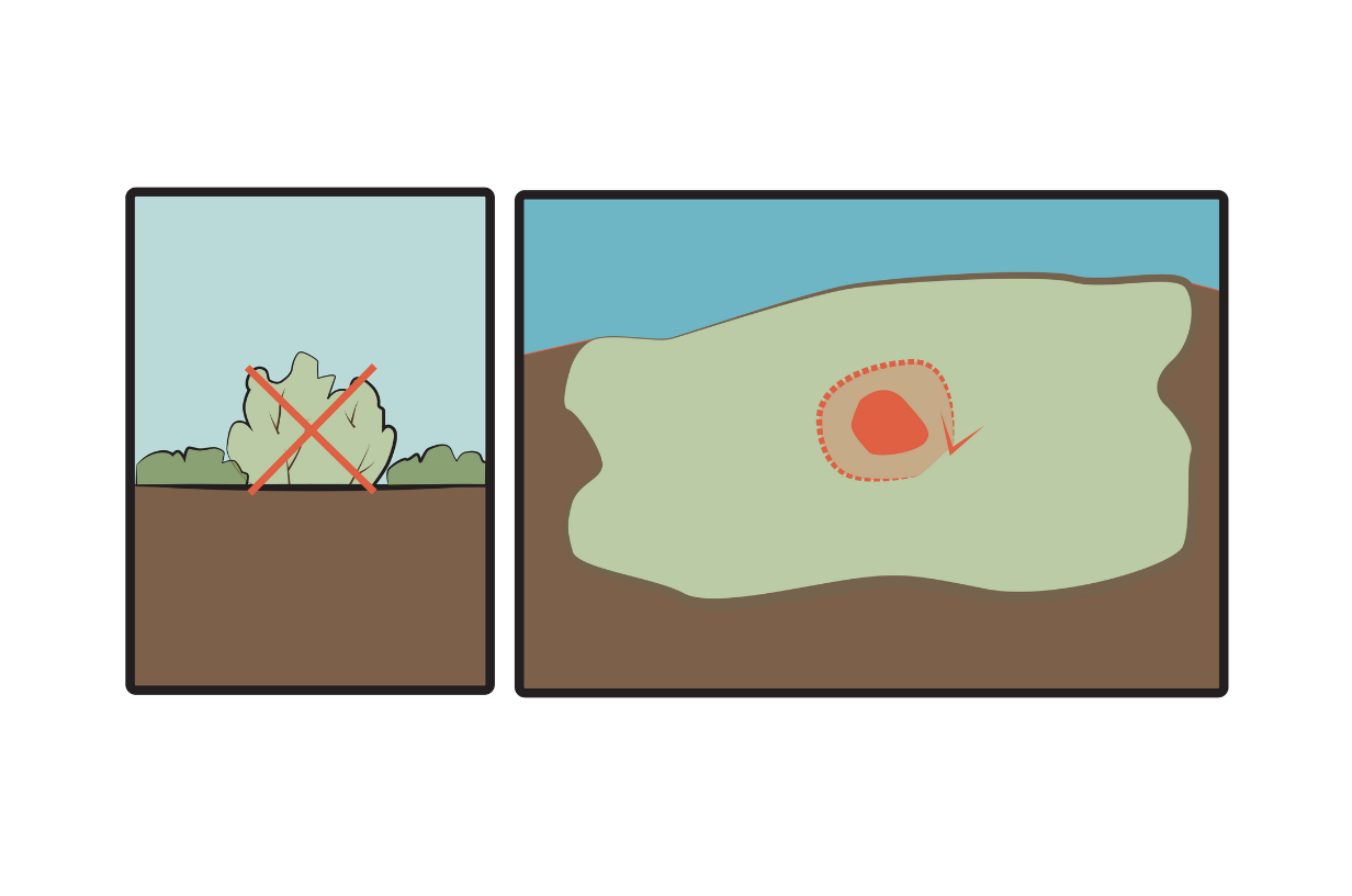 Neste tipo de intervenção a equipa pode desempenhar duas tarefas: a remoção preventiva no perímetro do núcleo e a neutralização do foco de invasão, ou seja intervir de forma concentrada nas plantas de maior porte pertencentes ao núcleo alvo.