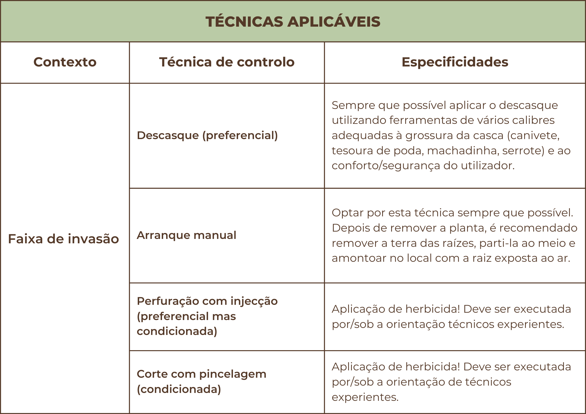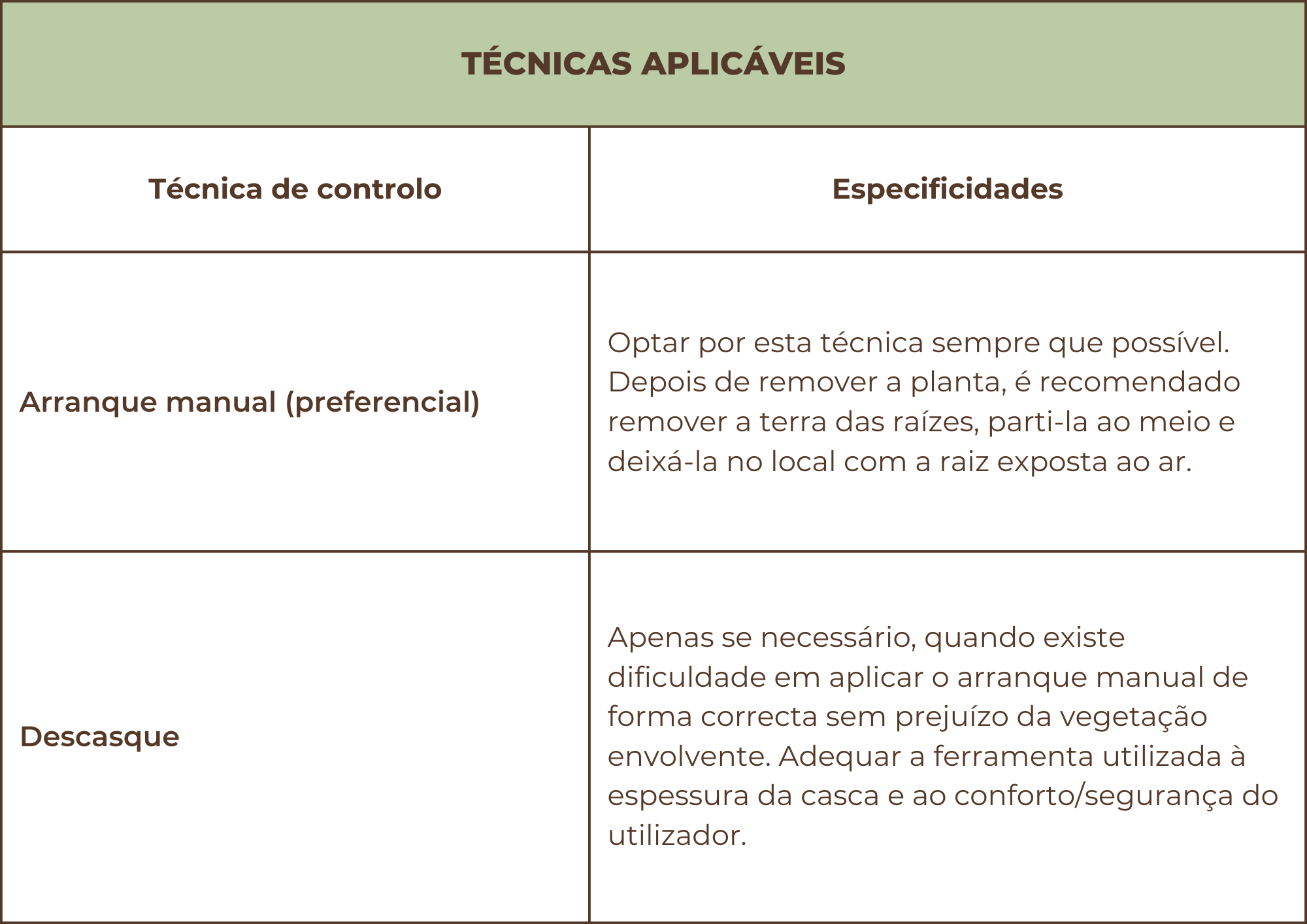 Ao fazermos a remoção preventiva, é preciso ter atenção ao impacto da intervenção. É importante que a equipa não só conheça muito bem a espécie alvo de remoção, saiba identificá-la à distância e nas suas várias fases de evolução, mas também saiba quais as técnicas de controlo mais adequadas a aplicar em cada situação. Além disso, é importante que a equipa de intervenção saiba distinguir a vegetação autóctone e, principalmente, identificar a flora ameaçada ou mais sensível ao pisoteio que possa existir.