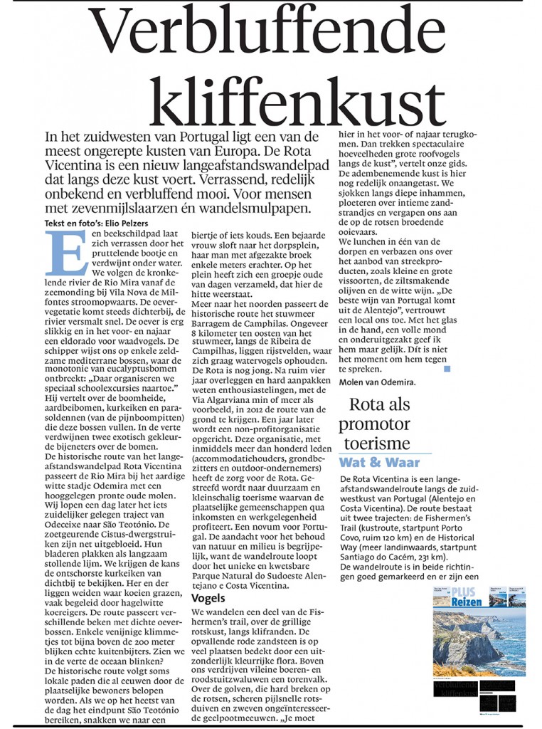 “In the southwest of Portugal is one of the most pristine shores of Europe. The Rota Vicentina is a new long distance footpath that runs along the coast, surprisingly, relatively unknown and stunningly beautiful”, he wrote in his article in which he describes an experience of a short boat trip upstream the river Mira, from Vila Nova de Milfontes to Odemira.