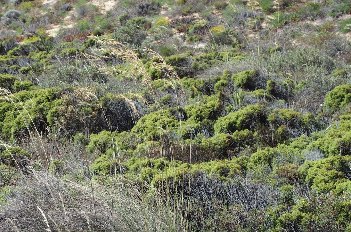 On Sunday afternoon, we walked through the Sea-sand juniper (or Juniperus navicularis) shrubland, a plant that is endangered and is distributed in some patches along the southwestern Alentejo coast. Being the reason why the Alteirinhos pilot area was chosen as an invasive control area by Rota Vicentina, it was also the reason why the Rewilding Association joined us in this activity.