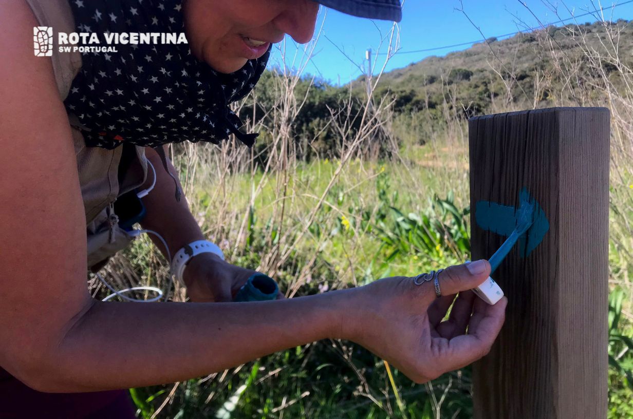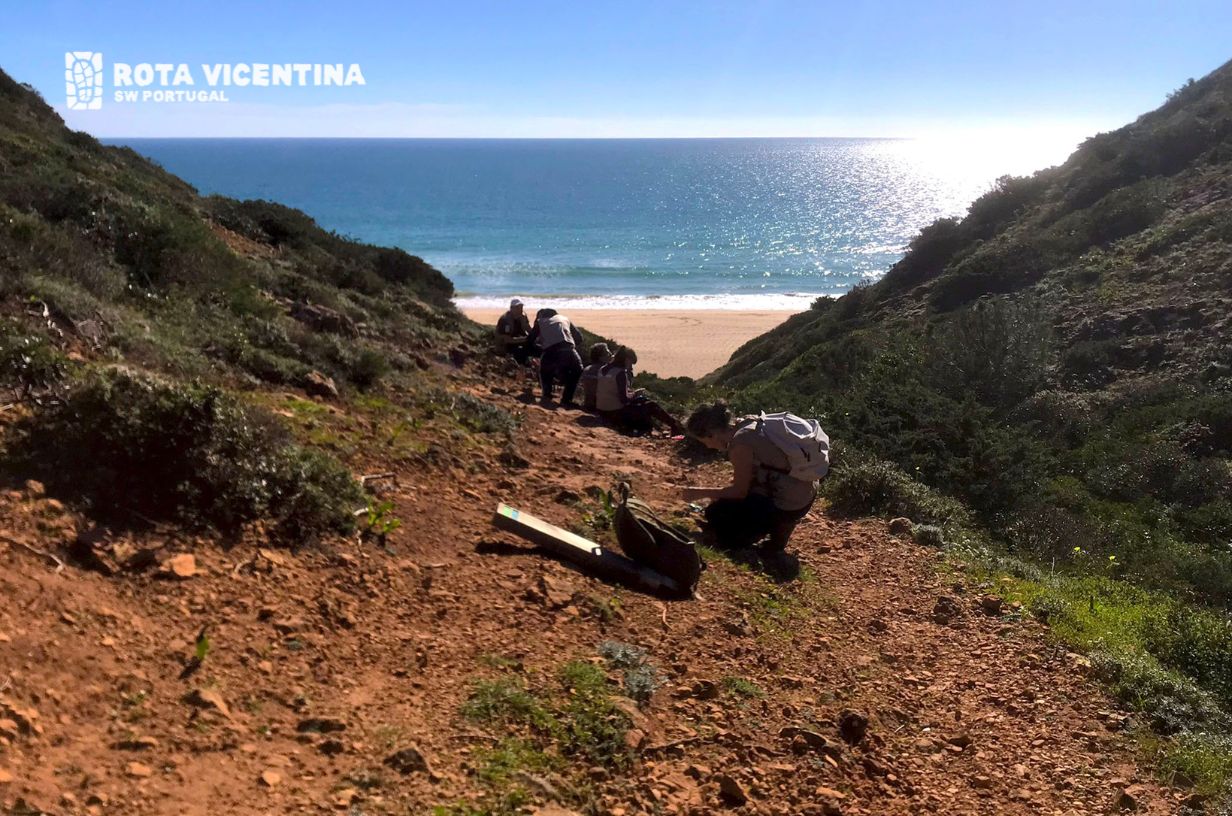 On this day, the cold weather took a small vacation and the sun shone as if summer was back for a while. We walked through the red and rocky land of the Algarve’s cliffs, discovering hidden valleys that framed discreet beaches and its calm, crystal-blue sea. The maintenance was demanding but it did not lowered the energy and persistence of this group of volunteers!