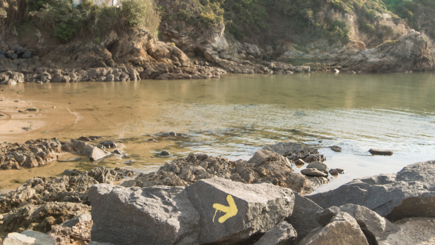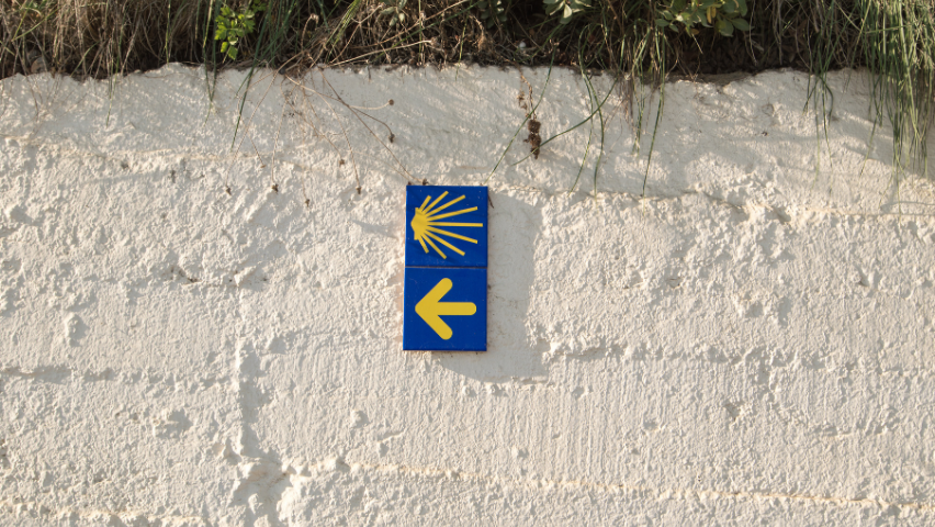 Lungo il percorso troverete il simbolo del Cammino di Santiago: una conchiglia stilizzata di colore giallo su sfondo blu.