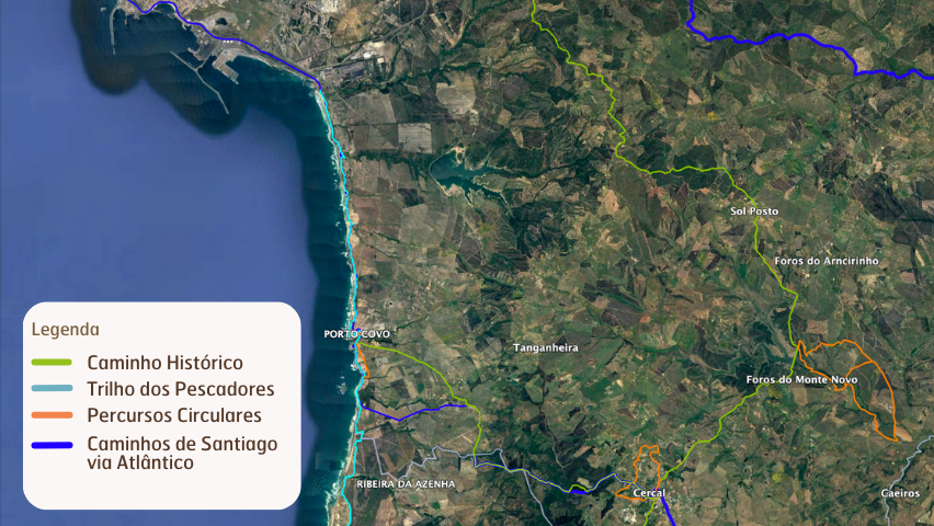 In linea con questa tendenza, è aumentata l’offerta di percorsi a piedi (e in bicicletta) non solo promossi dalla Rota Vicentina. In alcuni punti infatti si sono già verificate sovrapposizioni di percorsi. Vediamo dove: