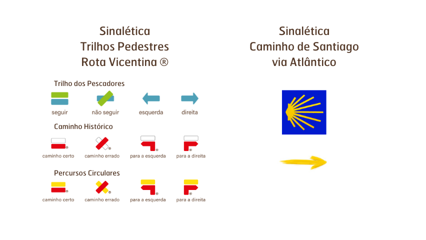 Segnaletica del Cammino di Santiago e di altri percorsi che coincidono con la Rota Vicentina