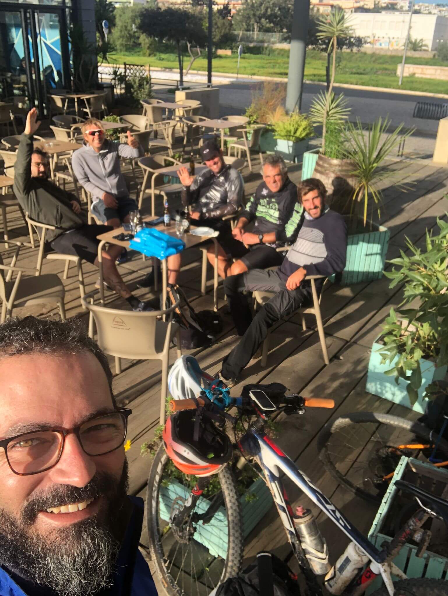 Paragem no Salema Beach Village para falar à Marta. Logo ao lado, visita à Musette.bikes com o Jerom que ia no nosso grupo. Passagem por várias praias: Salema, Burgau, Luz, até entrar em Lagos, sendo que no caminho ainda nos cruzamos com voluntária, a querida Beatriz (avistada no Burgau).